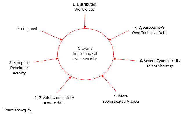 Cybersecurity is unique, in that it is the only sub-industry of the IT sector driven by adversarial forces. It's not hard to see why, when one discovers that ransomware is more profitable than cocaine trafficking in the 1990s, but with negligible risks. The reward-to-risk of cybercrime is such that adversaries are only going to grow in number and sophistication.